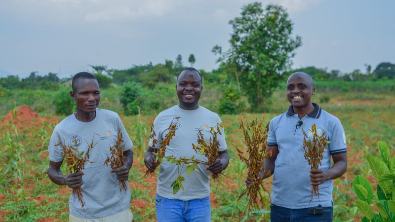 Aber um die Ernährungslage zu sichern, geht es der Landwirtschaft in Afrika nicht nur um Kalorienlieferanten wie Mais. Ugander lieben Bohnen, im Schnitt isst jede:r Einwohner:in fast 60 Kilo im Jahr. Gerade für ärmere Familien liefern Bohnen wichtiges Eiweiß. Für den erfolgreichen Anbau kommt es auch hier auf das „Wie“ an. Gegenüber dem durchschnittlichen Ertrag lassen sich durch Fachwissen die Erntemengen versechsfachen. Dabei spielt auch der richtige Erntezeitpunkt eine entscheidende Rolle: Wird er zu früh gewählt, sind die Bohnen klein und verschrumpelt, liegt er zu spät, sind die Bohnen anfällig für Ungeziefer.
