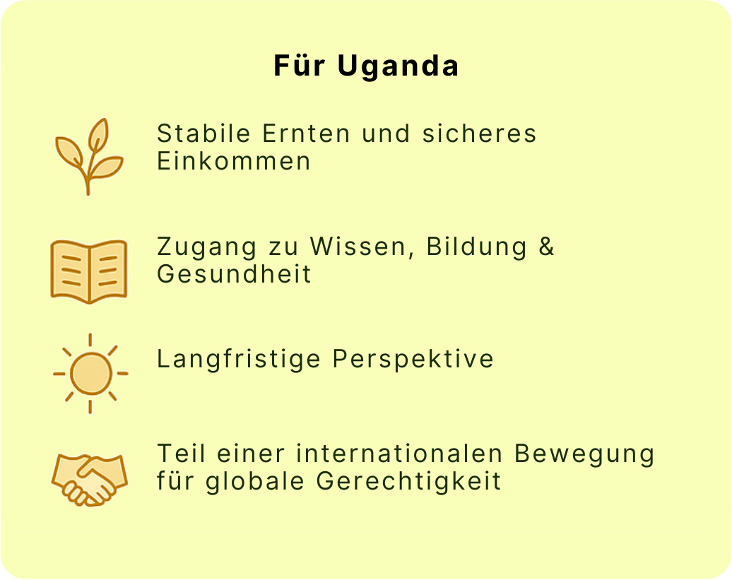 Durch den Klimawandel kämpfen die Menschen in Uganda mit immer häufiger auftretenden Wetterextremen: Langanhaltende Dürren, extreme Hitze und plötzlichen Starkregen zerstören die Ernten der Kleinbäuer:innen, die von ihrem Stück Land leben.